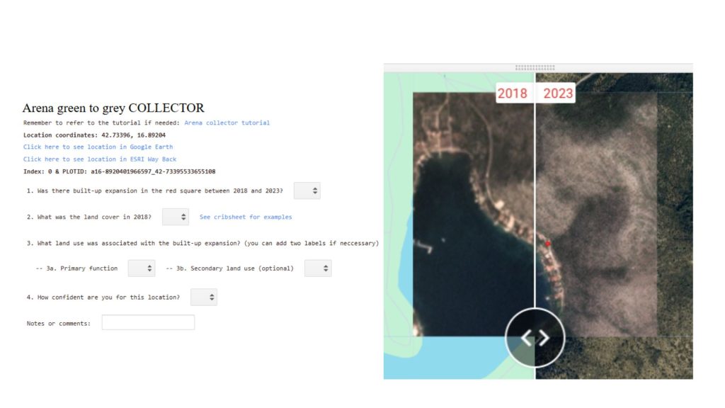 Συγκρίνοντας τις εικόνες πριν (2018) και μετά (2023), εντοπίσαμε τις φυσικές περιοχές (δάση, καλλιέργειες, κ.ά.) που μετατράπηκαν σε τεχνητές (δηλαδή κτίρια, αποψιλώσεις, εργοτάξια κ.ά.), διαδικασία που ονομάζεται «δέσμευση γης» (land take), και δημιουργήσαμε σύνολα δεδομένων για κάθε χώρα.